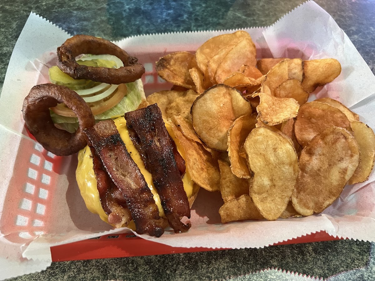 Found this place by accident. It is close by the Wauponsee Glacial Trail (Symerton Road access) and was a nice place to grab lunch after hiking. It is the only business in the small town of Symerton. I tried their Symerton Tap Burger which comes with double the cheese, bacon, and onion rings. It was a satisfying and tasty burger. It also comes with homemade chips that can be substituted for French fries or tatter tots for a $2 up charge. I am glad I stuck with the homemade chips, because they are done well here. My bill for the burger, homemade chips, and a can of Pepsi came to $16, which I consider a great value. You should be warned that this place is cash only. They do have an ATM if you need to take out some cash. The bartender was sweet and I was impressed she knew all the regulars’ bar orders. The place is frequented by local farmers. There is definitely a strong working man’s, Midwest vibe to the place. They also have an outdoor pavilion that I imagine is nice during the summers.